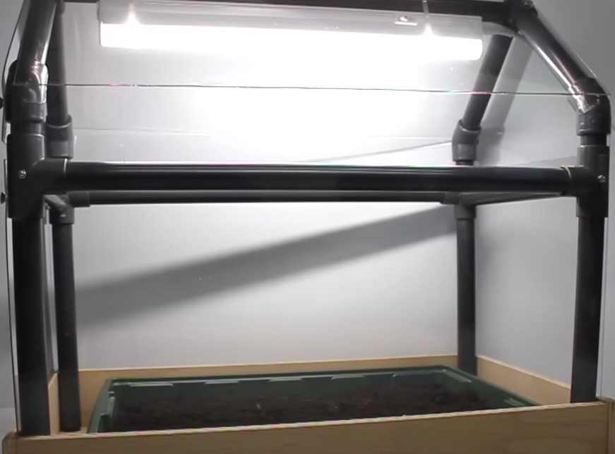 - Una estructura de madera o aluminio con estanterías para maximizar el espacio de cultivo.
