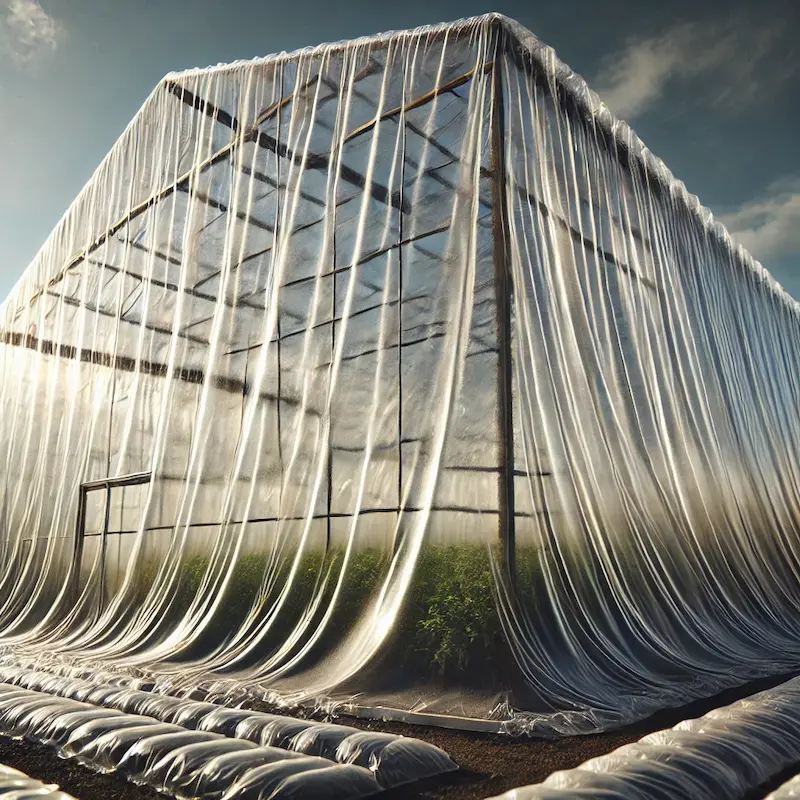 - Un mini túnel de PVC cubierto con plástico de polietileno, ideal para hortalizas.